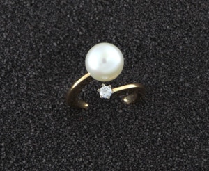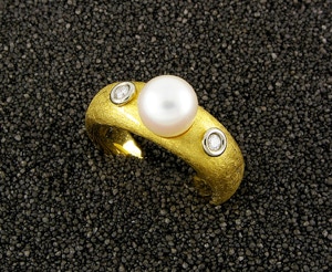Damenring in Gelbgold 750, Akoyaperle D= 8,1 mm
